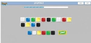 EOT uses colors placed in sequences to develop inductive reasoning skills. The student will, for example, have to add four colors to complete the sequence below: