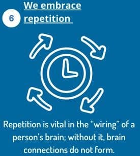 From a neuroscientific perspective, repetition is vital in the “wiring” of a person’s brain, i.e., the forming of synapses or connections between brain cells. Without repetition, key synapses do not form.