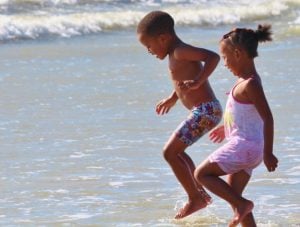 If your beach is firm and sandy, it’ll be perfect for sports and athletics. Encourage the kids to burn off energy with ball games, running races, or gymnastic competitions. See who can do the best handstand or the silliest walk. Set obstacle races involving rocks, pools, or deckchairs. Chase the waves out and race them back in.