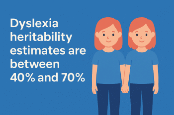- Dyslexia has a strong genetic basis, with heritability estimates between 40% and 70%.