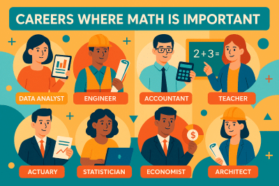 - Art and design: Creative careers use math, too! Architects draft building plans with precise geometry, graphic designers resize images using proportions, and animators rely on math to create smooth, lifelike motion.