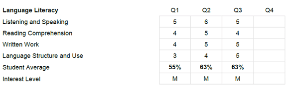 - Her school performance climbed. Her Grade 5 report card showed a dramatic improvement in language literacy, a direct reflection of her hard work and the program’s impact (see below).