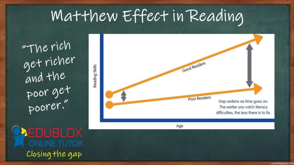 In the biblical story of Matthew, the rich get richer, and the poor get poorer. In the case of young readers, good readers read more and get better at reading, whereas less-skilled readers read less and fall farther and farther behind their peers. In time, the difference in reading ability can become significant and begin to impact other areas of learning, such as vocabulary development and comprehension.