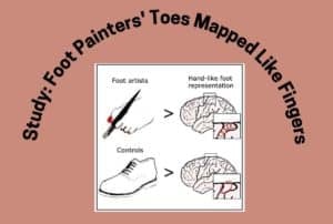 In the foot painters, specific sections of the brain’s foot area clearly reacted to their toes being touched. Brain maps comprised of individual toes were seen for each artist’s dextrous foot, with a similar but less pronounced pattern showing in their stabilizing foot. The two-handed controls showed no such maps. Other analyses showed the two foot painters’ feet were represented in their brains in a ‘hand-like’ way, but not the control participants’ feet.